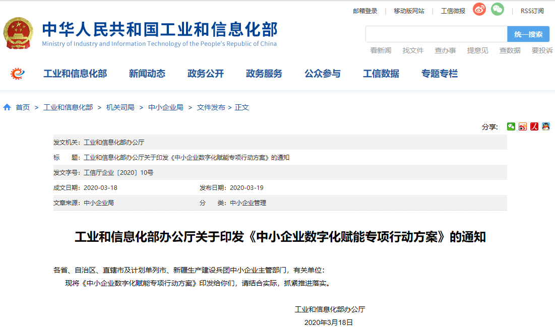 中小企業(yè)數(shù)字化賦能專項(xiàng)行動(dòng)方案 為深入貫徹習(xí)近平總書記關(guān)于統(tǒng)籌推進(jìn)新冠肺炎疫情防控和經(jīng)濟(jì)社會(huì)發(fā)展工作的重要指示精神,落實(shí)黨中央、...